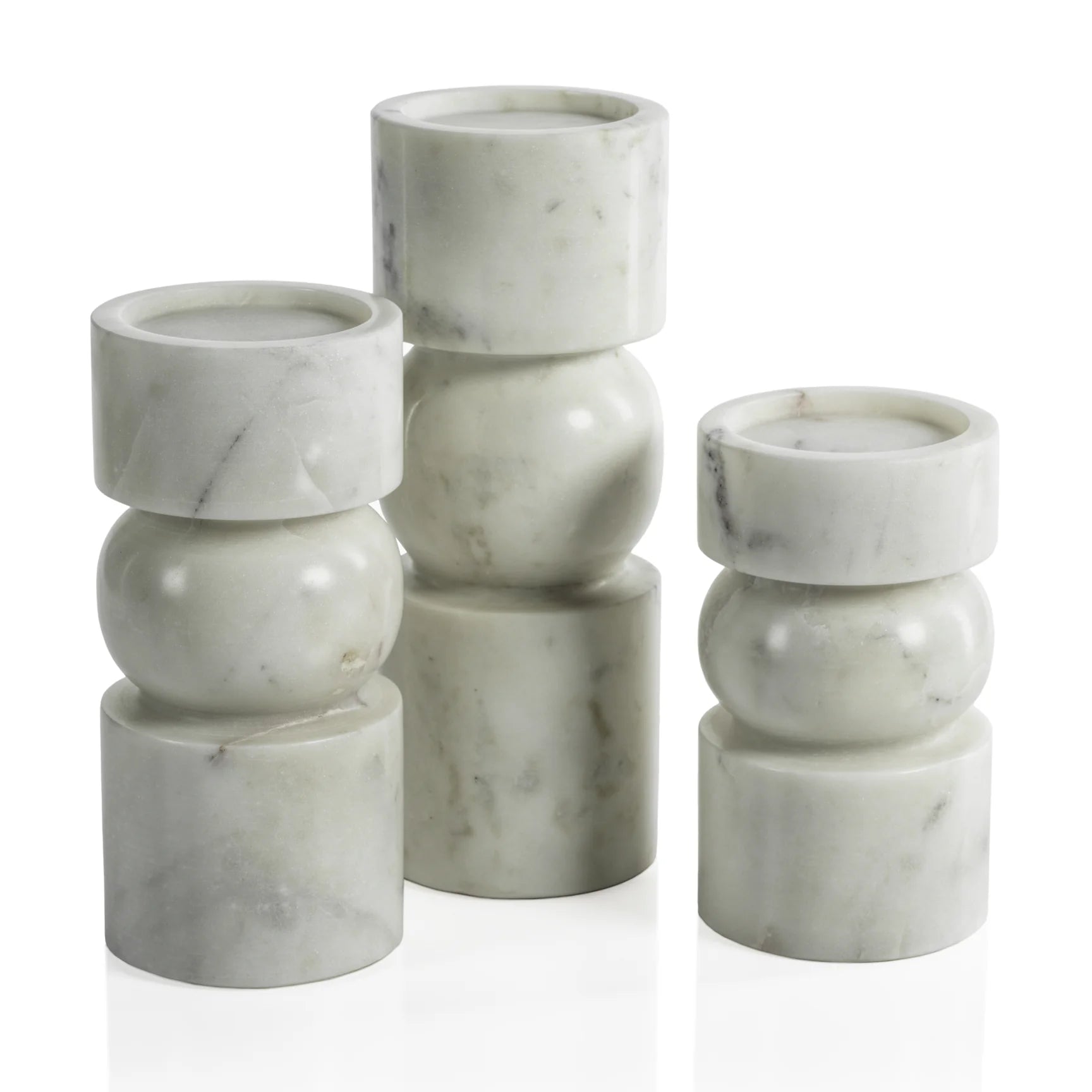 Sophisticated and timeless, the Marmar Marble Pillar Holders elevate any room with their understated luxury. These pillar holders, crafted from marble, offer a sleek, modern look that fits seamlessly into both contemporary and transitional spaces. Ideal for mantels or centerpieces, they bring a posh touch to any decor. Holds any 3" diameter pillar candle